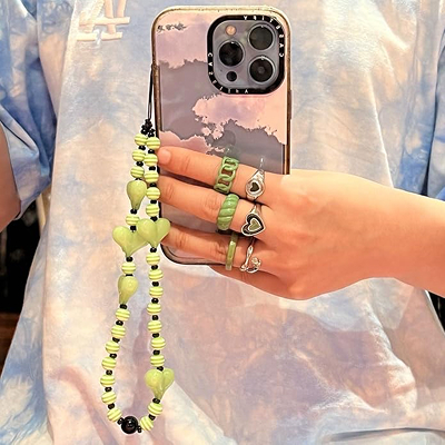 Six chunky green rings in mixed sizes let you layer and match your aesthetic your way. Paired with a durable 9-inch acrylic phone charm, this playful set brings color and personality to both your style and your tech. Ideal for teens, trend-lovers, or anyone embracing the Y2K revival. Packed in a shiny gift pouch — ready to surprise.